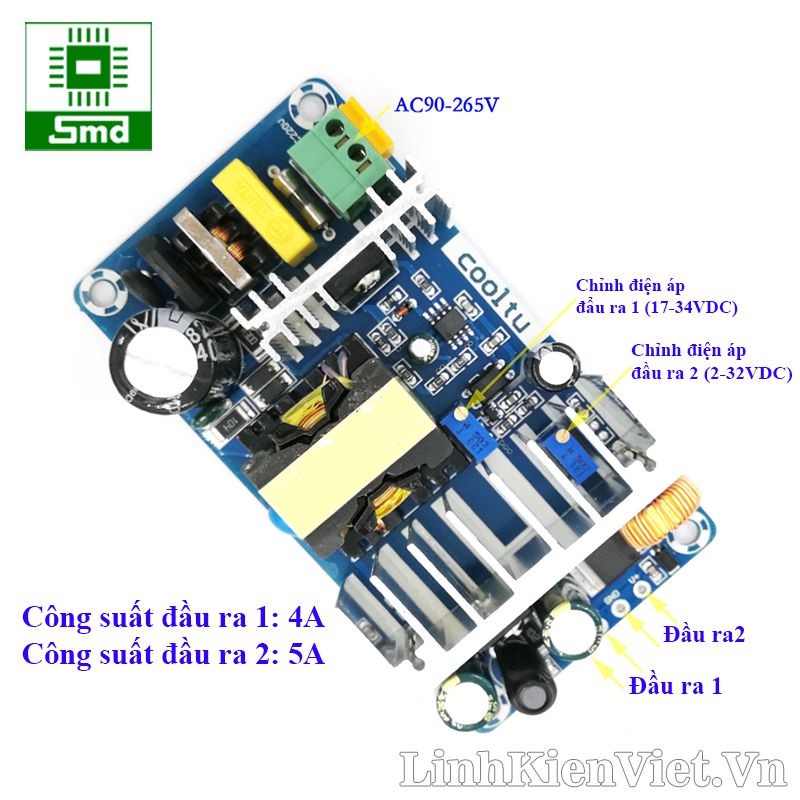 Giới thiệu Module nguồn xung hai đầu ra 100W AC-DC (24V-4A / 12V-5A)