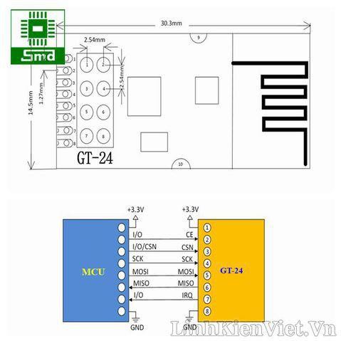 Module NRF24L01 PA LNA GT-24 (1100m) Mạch thu phát Không dây 2.4G NRF 24L01 Có khuếch đại PA LNA Anten tích hợpTHÔNG SỐ KĨ THUẬT: