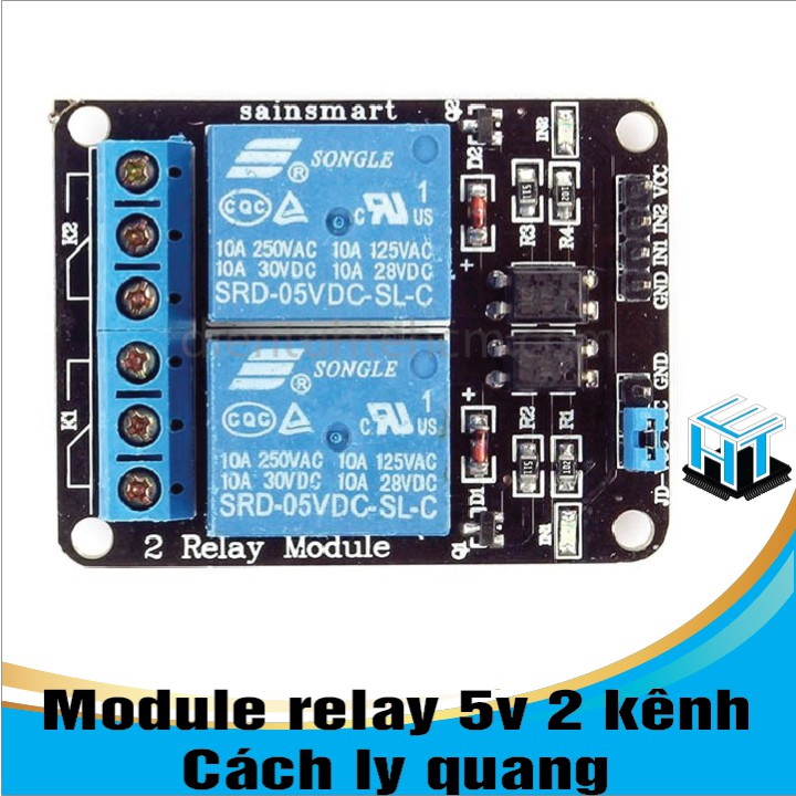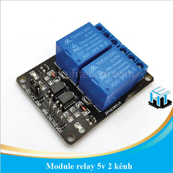 Module Relay 2-Channel 5VModule Relay 2-Channel 5V được dùng nhiều trong các ứng dụng đóng ngắt các thiết bị tiêu thụ dòng điện lớn (<10A). Module có thể đóng ngắt cùng lúc hai kênh bằng tín hiệu điều khiển ( với mức điện áp 3V3 hoặc 5V) từ các vi điều khiển khác nhau như: Arduino, 8051, AVR, PIC, DSP, ARM, ARM, MSP430, logic TTL, đồng thời module được cách ly bằng optocoupler giúp bảo vệ tốt hơn cho các vi điều khiển.