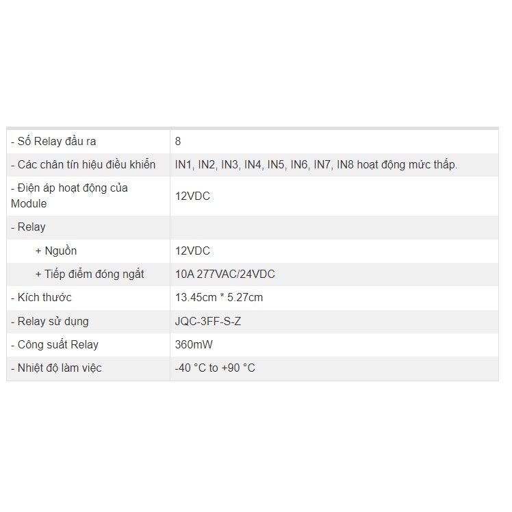 Module Relay 8 Kênh 12V MRL-CN-8-12Tính Năng Sản Phẩm