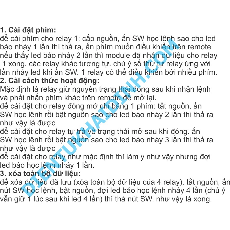 Giới thiệu module RF 2 RELAY 5V/12V, 433mhz, học lệnh kde2112