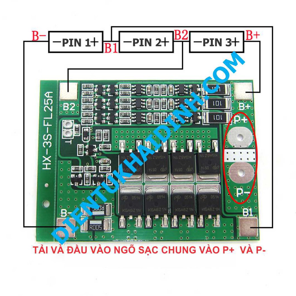 Giới thiệu module SẠC, bảo vệ quá tải pin 18650 3 viên 11.1V-12.6V 25A kde3128