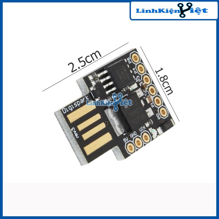 Module USB Mini ATTINY85 Tương Thích Với Uno R3Module USB Mini ATTIN85 là phiên bản nhỏ gọn nhất hiện tại của Arduino do DigiSpark phát triển dựa trên nền MCU ATTiny85 với khả năng kết nối trực tiếp máy tính qua cổng USB để nạp chương trình, mạch có cách sử dụng và lập trình tương đương với các phiên bản Arduino trước đó: Arduino Uno, Nano, Mega 2560,…. Với kích thước nhỏ gọn (bằng đốt ngón tay cái), độ cơ động cao, và giao tiếp USB, sản phẩm này là sự lựa chọn phù hợp cho nhiều ứng dụng khác nhau.