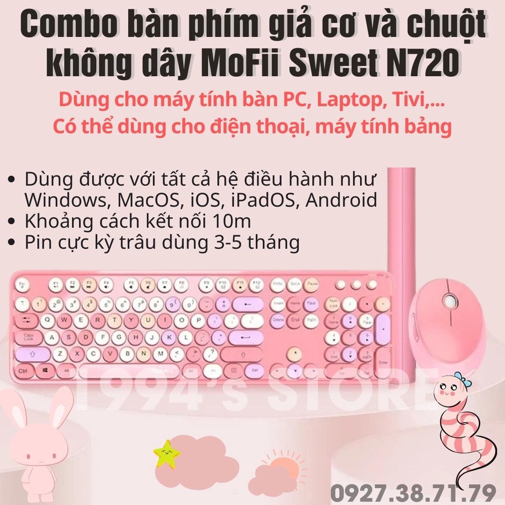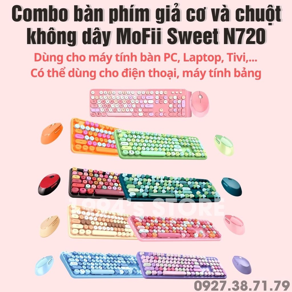 Máy tính & Laptop > Chuột & Bàn Phím > Bàn Phím Máy Tính || MoFii N720 - Combo bàn phím giả cơ và chuột MoFii Sweet 104 phím Wireless 2.4G siêu đẹp dùng cho PC, Laptop Tivi ....Còn hàng