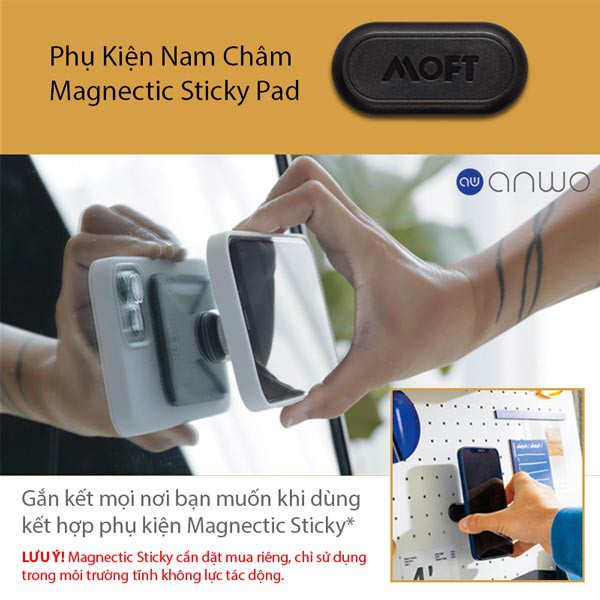 LƯU Ý!Miếng hít MOFT Magnectic Sticky Pads chỉ sử dụng chung với Giá đỡ điện thoại MOFT X Phone, không hỗ trợ sử dụng với các loại giá đỡ khác hoặc gắn trực tiếp vào điện thoại.