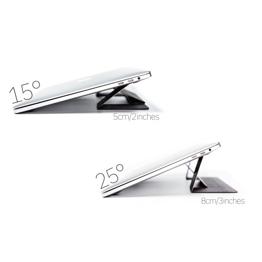 Máy tính xách tay là một công cụ tuyệt vời để làm việc di động. Tuy nhiên màn hình của laptop được thiết kế thấp và gắn cố định vào bàn phím nên đôi khi người dùng buộc phải sử dụng máy những tư thế bất tiện, gây đau cổ và giảm sự thoải mái nếu sử dụng trong thời gian dài.Vấn đề là các giá đỡ máy tính xách tay truyền thống quá cồng kềnh để mang theo và thường mất rất nhiều thời gian để lắp đặt, đôi khi chúng ta cảm thấy bất tiện khi sử dụng