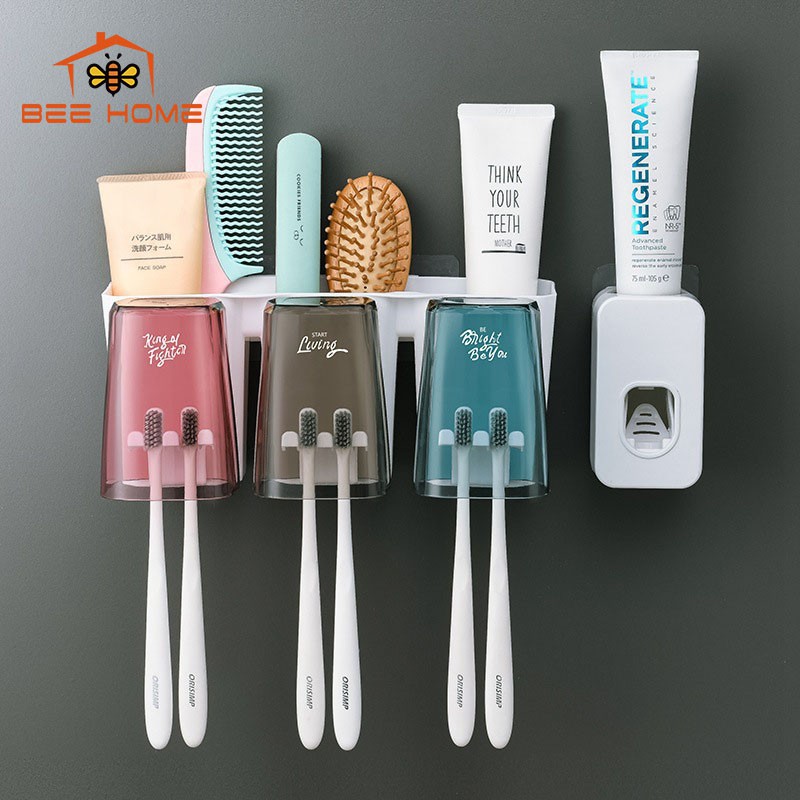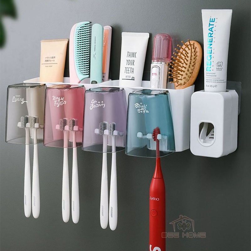 ( MỚI ) Bộ Kệ Treo, Kệ Đựng Bàn Chải, Kem Đánh Răng 3 và 4 ngăn - BEEHOME ( TẶNG KÈM CỐC )