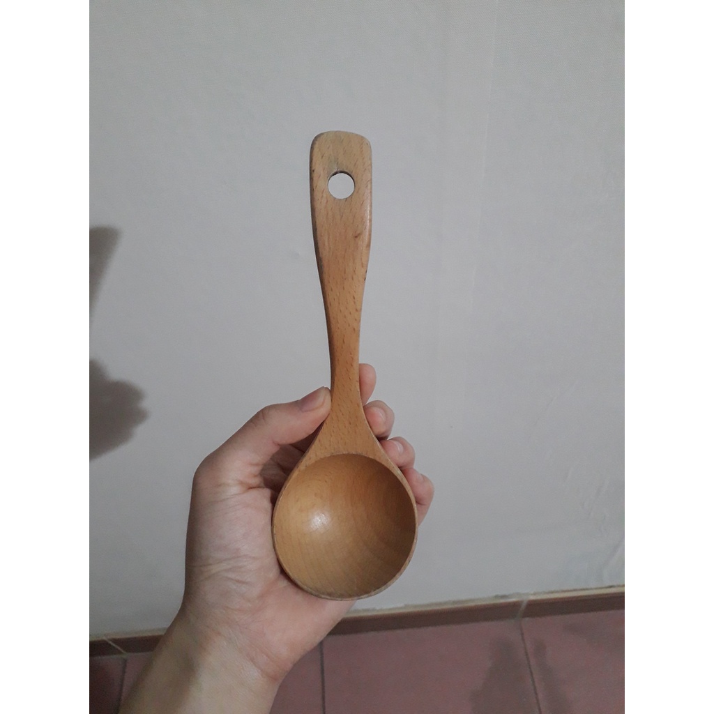 Môi canh có lỗ (Vá môi), muỗng múc canh bằng kim loại, môi múc cơm bằng gỗ dài 22cm, rộng 6cm