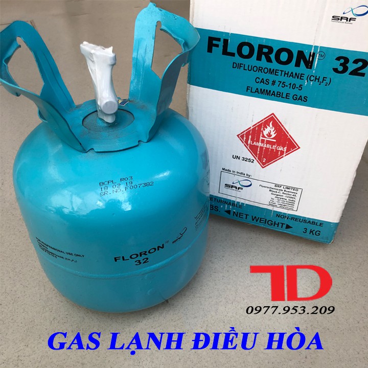 Giới thiệu Môi chất lạnh điều hòa R32 FLORON Ấn Độ 3KG, ga lạnh R32
