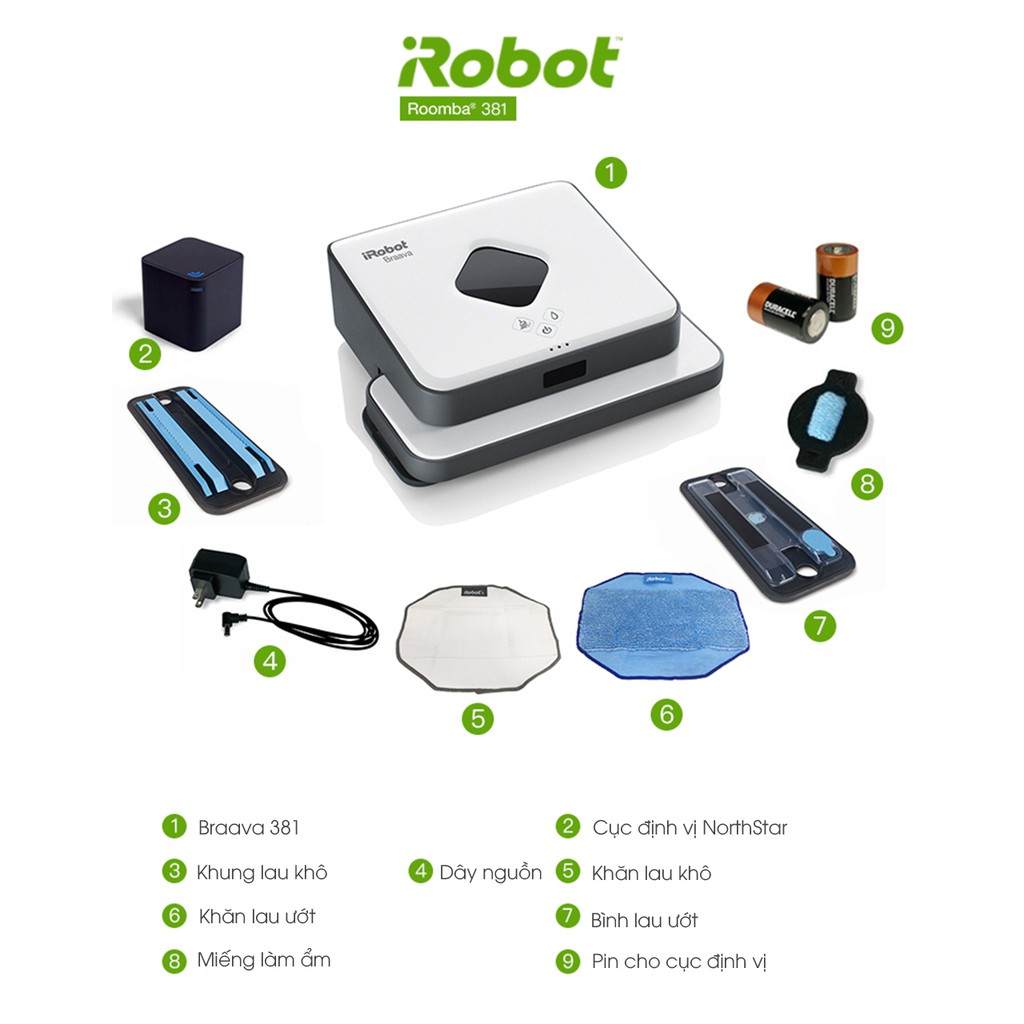 *** Thiết kế và sản xuất bởi iRobot - công ty Mỹ có 30 năm trong sản xuất robot công nghiệp và dân dụng.