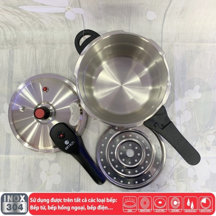 Giới thiệu [Dùng Mọi Loại Bếp] Nồi áp suất đun ga đáy từ Elmich dung tích 4L, size 20cm, Inox 304, bảo hành 24 tháng