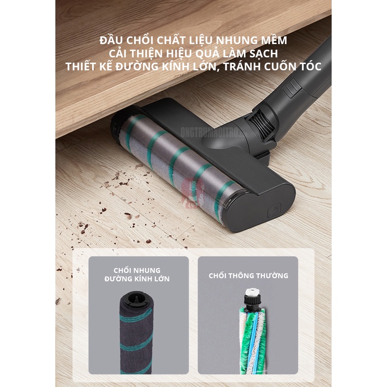 7. Đầu chổi chất liệu nhung mềm cải thiện hiệu quả làm sạch, tránh vướng tóc nhờ thiết kế đường kính lớn.