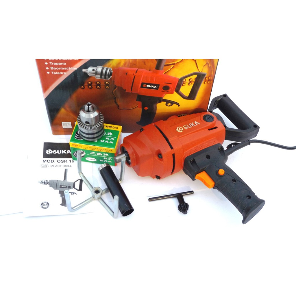 - Đồng thời máy trộn sơn OSUKA có tay cầm phụ trợ lực, tạo thế bám tốt, cứng cáp, chắc chắn khi làm việc