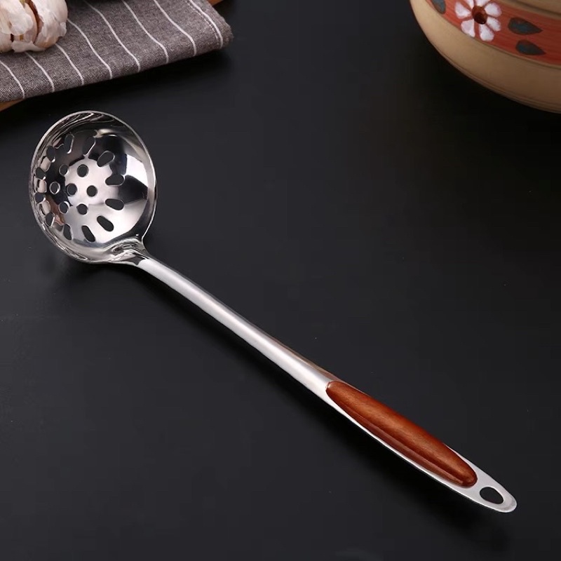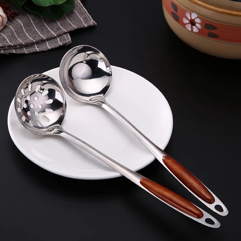 Nhà cửa & Đời sống > Dụng cụ nhà bếp > Cây vét bột & đồ gắp thức ăn || Môi múc canh cán ốp vân giả gỗ 7cm 100% inox 304Còn hàng