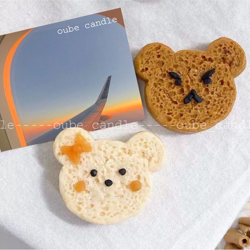 Nến Thơm Tinh Dầu Hình Bánh Sandwich Mặt Gấu Đáng Yêu - Quà tặng dễ thương decor Hàn Quốc 6.6x5.5x2cm | Oube Candle NT23