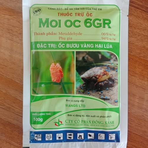 MOI OC 6G là thuốc đặc trị các loại ốc gây hại cho cây trồng như: ốc bưu vàng, ốc sên, ốc ma, ốc quắn, ốc nhớt..- Thuốc được sản xuất ở dạng bã, có chất dẫn dụ để thu hút ốc đến ăn và ốc bị tiêu diệt.