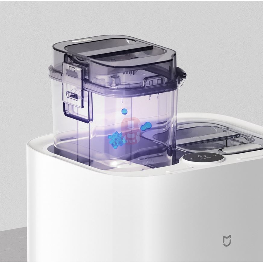 2. Trạm sạc thông minh, hỗ trợ làm sạch, sấy khô giẻ lau. Robot có khả năng tách riêng nước sạch và bẩn và được trang bị chức năng khử trùng nước bằng điện phân và tia cực tím UV.