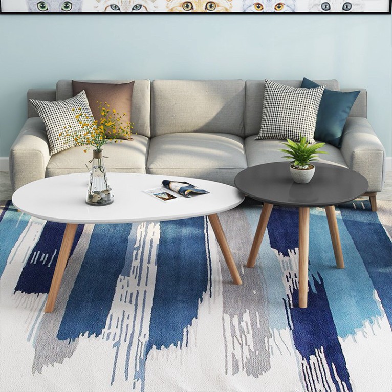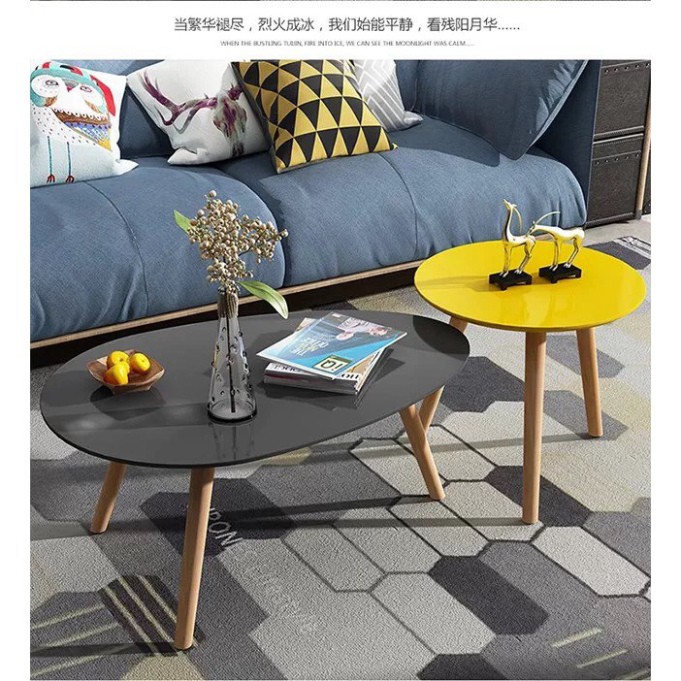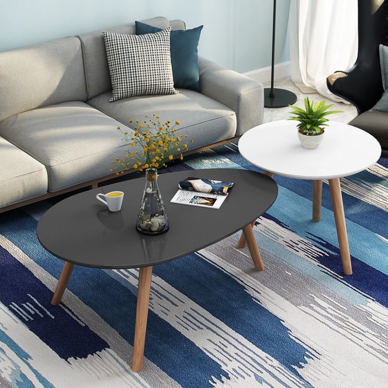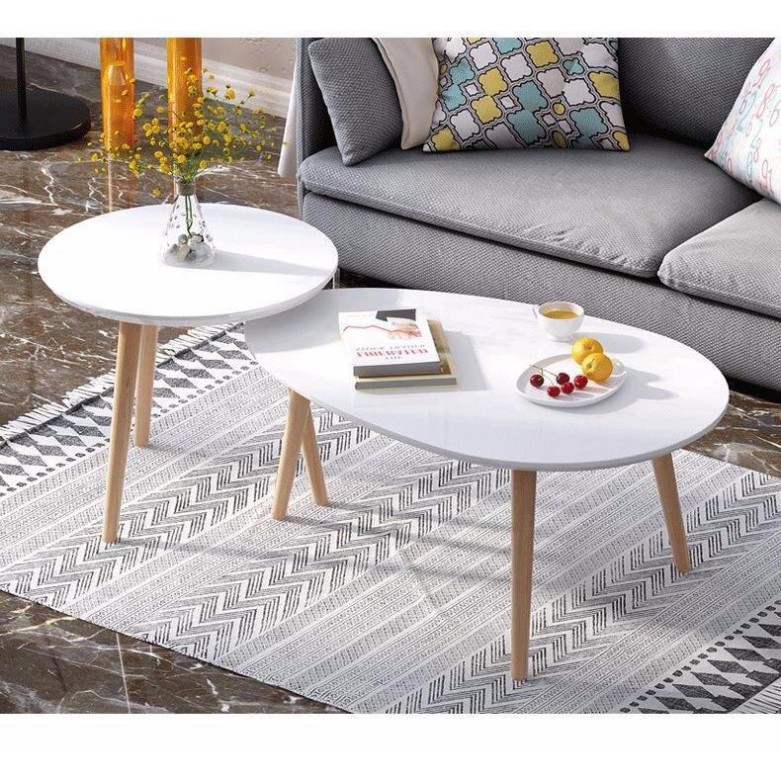 Nhà cửa & Đời sống > Nội thất > Bàn || [MỚI SALE] Combo bàn trà sofa hình trứng kèm bàn tròn, chân gỗ tiện sơn lót PU chống mối mọt, dễ lắp đặt khi nhận hàngCòn hàng
