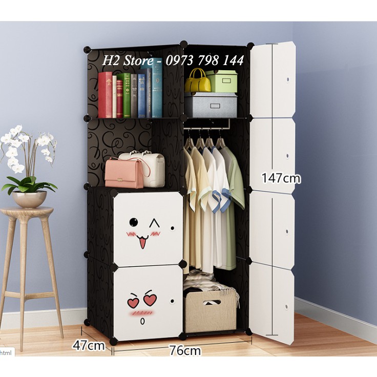 [MỚI] - TỦ NHỰA ĐA NĂNG 8 Ô (GỒM 2 KỆ GÓC) MÀU ĐEN CỬA TRẮNG MẶT CƯỜI TREO ĐỒ THÔNG MINH sâu 47cm