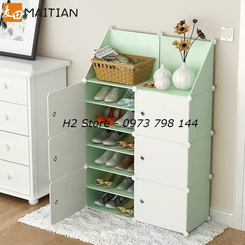[MỚI VỀ] - TỦ NHỰA ĐỂ GIÀY DÉP ĐA NĂNG 12 Ô (chia ô) + 2 KỆ TAM GIÁC (Tùy chọn mẫu)
