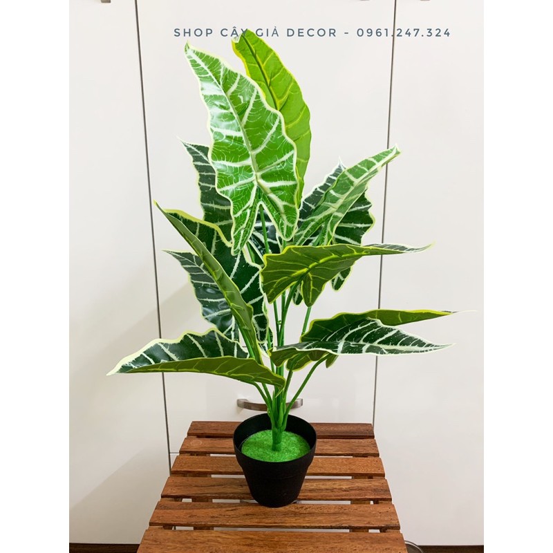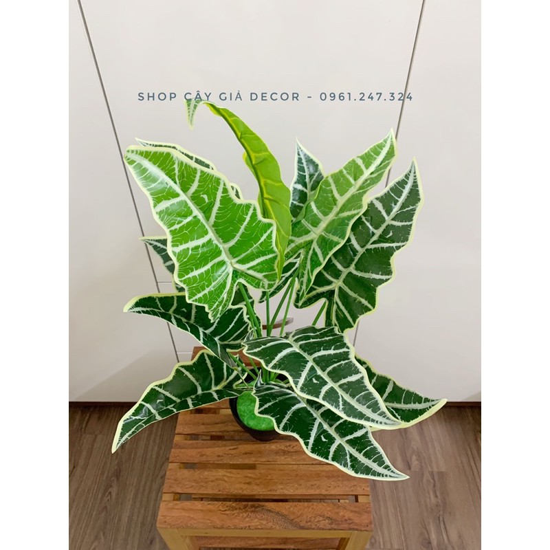 cây gồm 12 lá, cao 55cm với hoạ tiết cực đẹp và bắt mắtshop có bán chậu kèm theo. decor cực xinh và lạ ạ