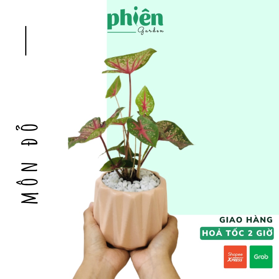 Nhà cửa & Đời sống > Làm vườn > Cây cảnh || Cây Môn lá đỏ để bàn kèm chậu gốm cực xinhCòn hàng