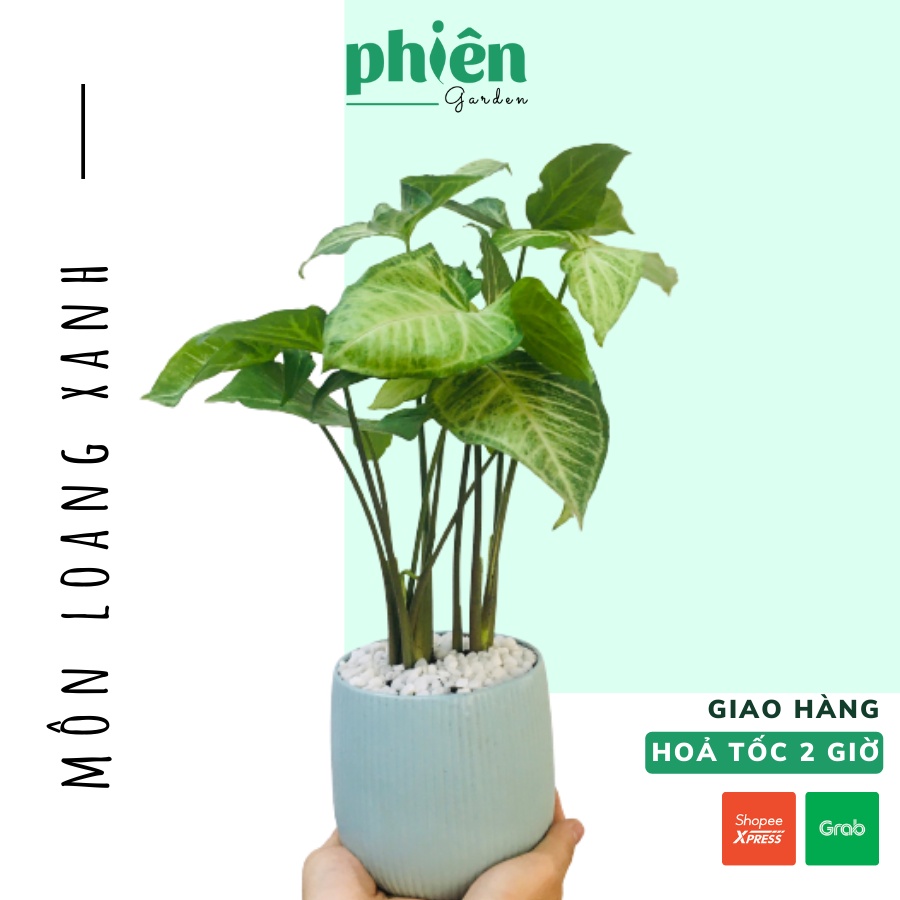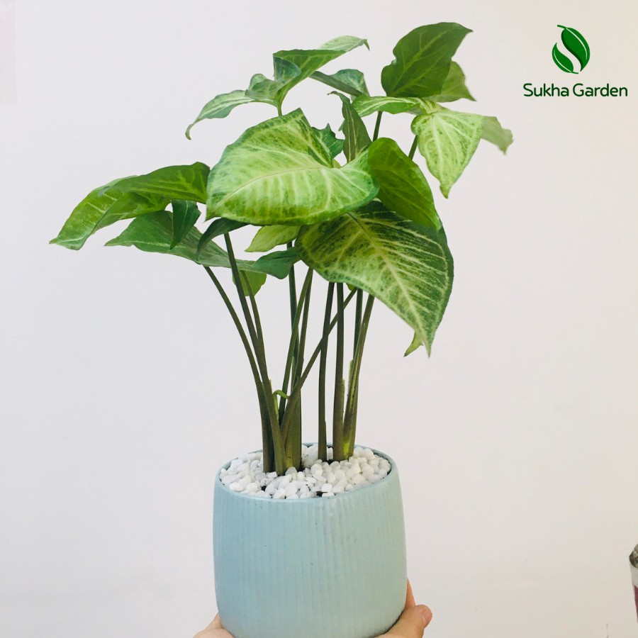 Nhà cửa & Đời sống > Làm vườn > Cây cảnh || Cây môn lá loang xanh để bàn kèm chậu gốm tráng menCòn hàng