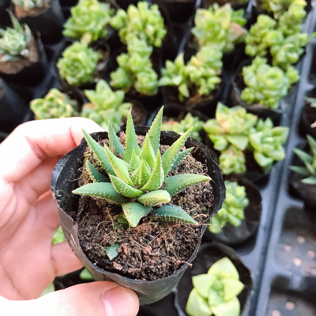 >Shop chắc chắn giao ĐÚNG LOẠI và cố gắng chọn cho khách hàng cây đẹp nhất ạ >Sản phẩm bao gồm cây và bầu đất nilong size 7x7cm, các bạn có thể so sánh đường kính cây và đường kính bầu đất để ước chừng !