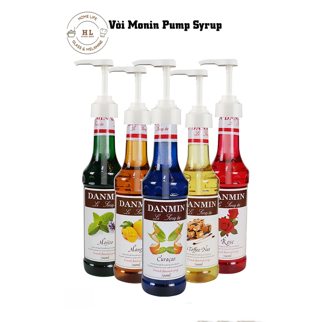 Monin Pump Syrup -Vòi bơm sirô (syrup) MoninVòi bơm si-rô được thiết kế bằng nhựa cao cấp màu trắng, phù hợp dùng trong thực phẩm và tuyệt đối an toàn, không bị thôi mùi ảnh hưởng đến chất lượng của si-rô trong chai hay bất kỳ chất lỏng nào tiếp xúc với vòi bơm này.