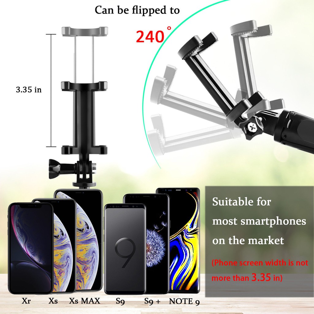 Chiếc gá kẹp điện thoại có thể sử dụng cho tất cả các dòng điện thoại có độ rộng lên tới 3.35 inch