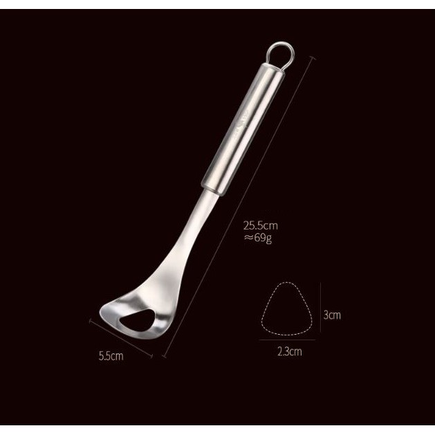 Giới thiệu (MÓP NHẸ) Muỗng Làm Thịt Viên dụng cụ nặn mọc cá viên Inox chống dính - 25.5x5.5cm 69g (Lỗ: 2.3x3cm)