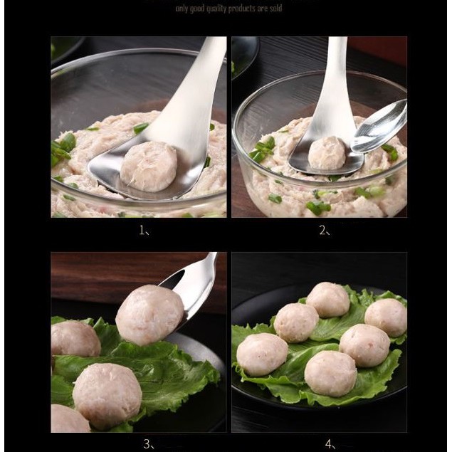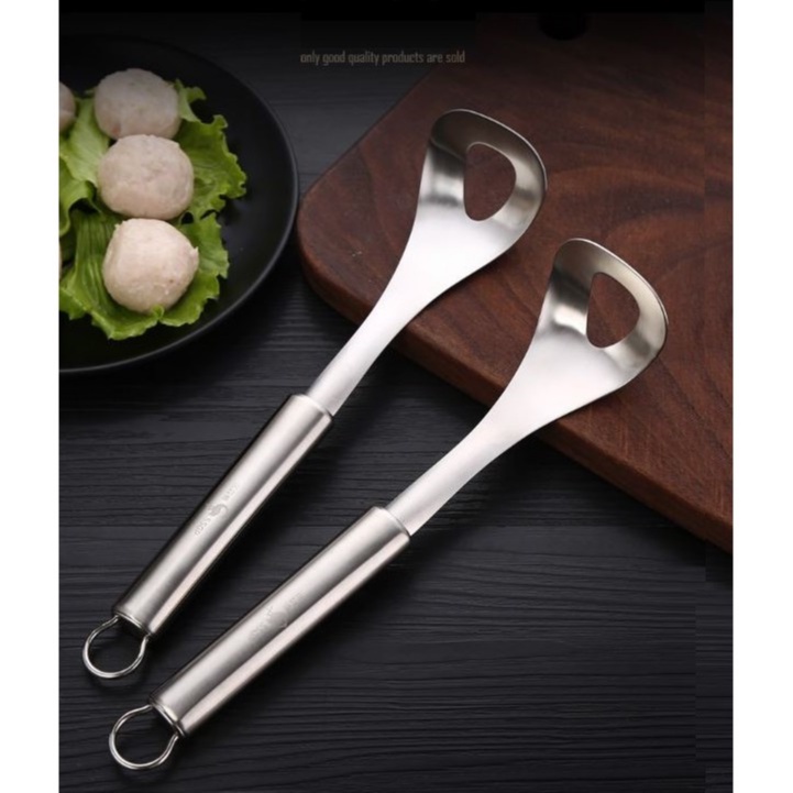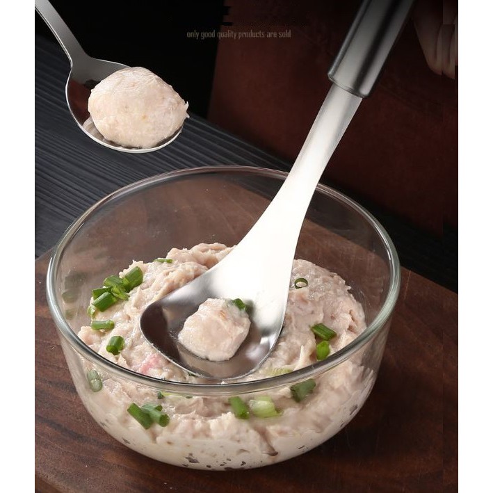 Nhà cửa & Đời sống > Dụng cụ nhà bếp > Khác || (MÓP NHẸ) Muỗng Làm Thịt Viên dụng cụ nặn mọc cá viên Inox chống dính - 25.5x5.5cm 69g (Lỗ: 2.3x3cm)Còn hàng