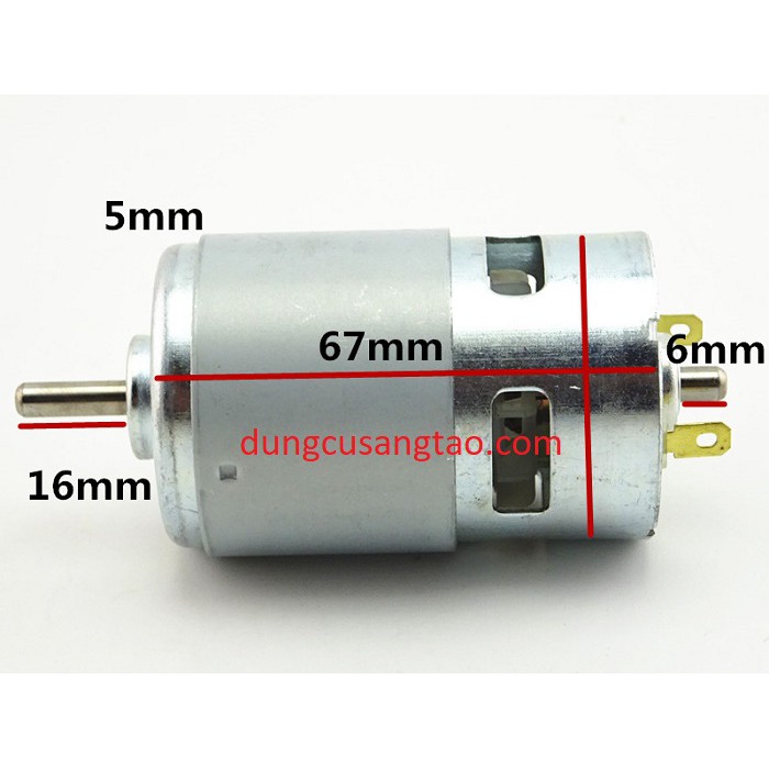 + Motor có đường kính thân 42mm, chiều dài 67mm, đường kính trục 5mm, chiều dài trục 16mm.