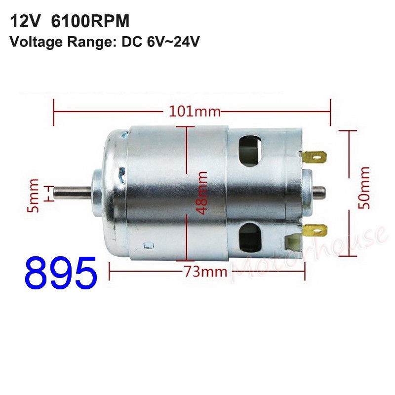 Motor 895 2 bạc đạn có moment lớn (lực lớn hơn loại 775 và 795), có thể sử dụng cho các mục đích làm motor máy khắc CNC mini, máy khoan, mài, cắt. Sản phẩm có thể dùng kèm với đầu giữ khoan đến 10mm, sử dụng được các phụ kiện khoan, mài, cắt,…CÔNG DỤNG SẢN PHẨM:Motor 895 12V - 24V 368W - 2 Bạc đạn