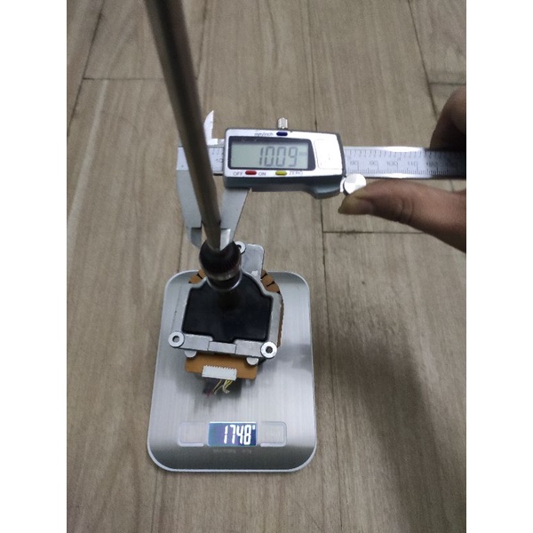 Motor 9.4 có đường kính lớn lên đến 10cm, trọng lượng khoảng 1.7kg. kèm trục nối dài thì tầm 2kg. Trục 10mm