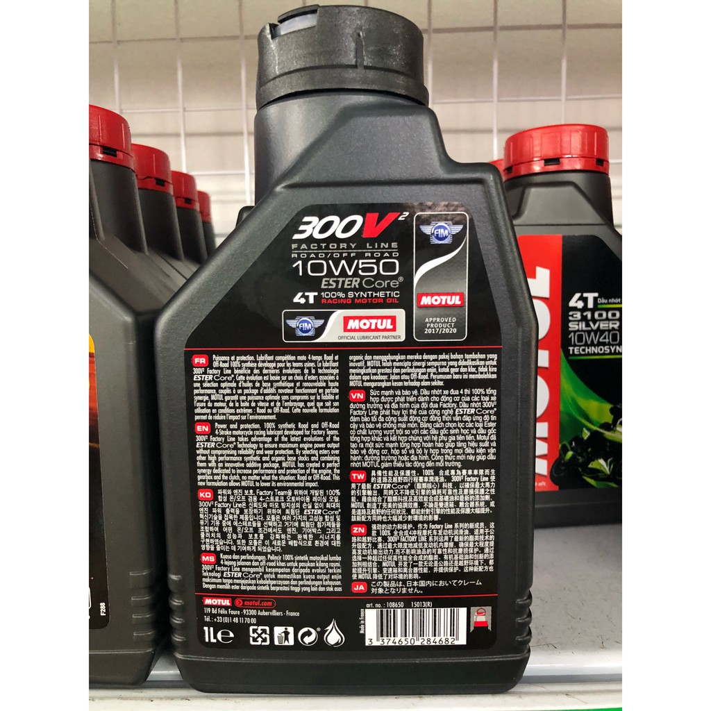 Motul 300V2 Factory Line 10W50 1L - nhớt tổng hợp 100% xe mô tô PKL chuyên phượt đường dài