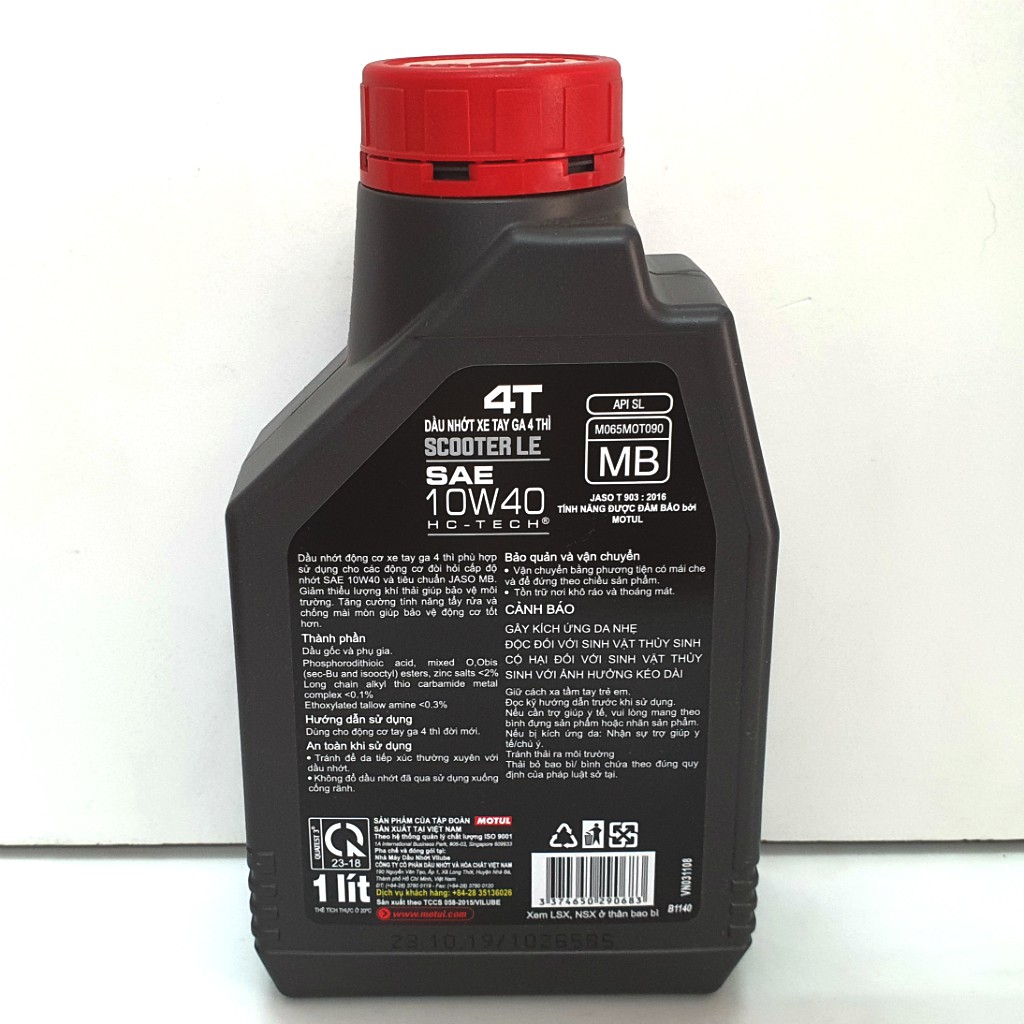 MOTUL SCOOTER LE 10W40 HC-TECH SL MB DẦU NHỚT XE TAY GA 1L