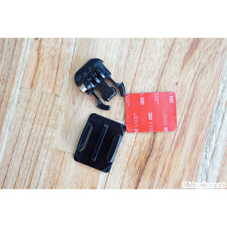 Bộ Mount dán nón GoPro và Action Cam gồm có một đế cứng cong, một khóa kiểu cơ bản và một miếng keo dán 3M cao cấp.