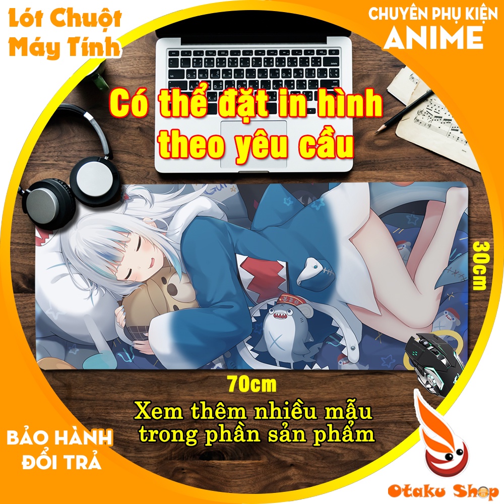 Giới thiệu { Mouse pad 70x30cm } Lót chuột máy tính Anime Hololive Gawr Gura chất liệu cao su chống nước đặt bàn di chuột chơi game