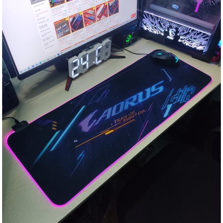 Máy tính & Laptop > Phụ Kiện Máy Tính > Bàn Di Chuột || Mouse Pad, bàn di chuột, lót di chuột tích hợp Led RGB Aorus Version 2 sáng viền, kích thước 80cm x 30cm dày 4mmCòn hàng
