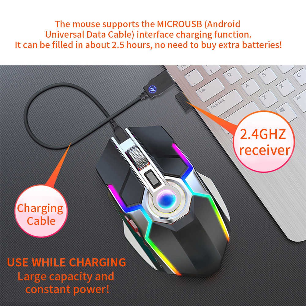 [MOUSEGAMING] Chuột A5 Không Dây Chơi Game Sạc Pin Im Lặng Ergonomic 7 Phím Đèn Nền RGB 1600 DPI
