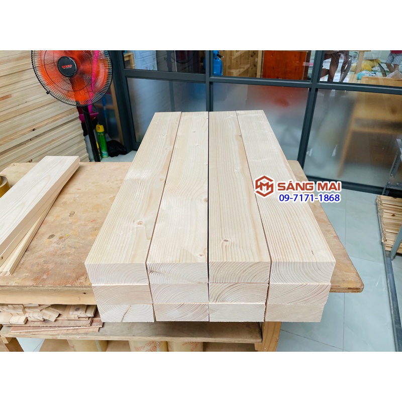 [MS153] Thanh gỗ thông 5cm x 10cm x dài 1m + láng mịn 4 mặt