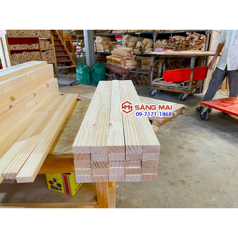 [MS94] Thanh gỗ thông 2cm x 4cm x dài 80cm + láng mịn 4 mặt