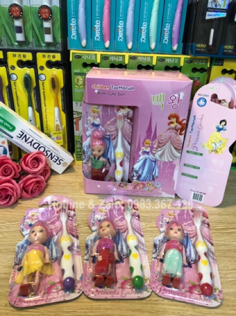 Giới thiệu MSP - C025: 1 Chiếc bàn chải trẻ em bé gái Hàn quốc tặng kèm búp bê
