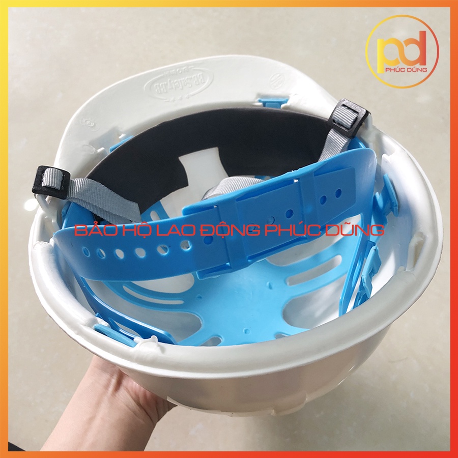 -Đai nón bảo hộ được làm bằng nhựa dẻo và sợi tổng hợp, ngoài ra còn có miếng lót bằng mút giúp tạo cảm giác êm hơn khi sử dụng, bảo vệ người mang 1 cách tối đa.