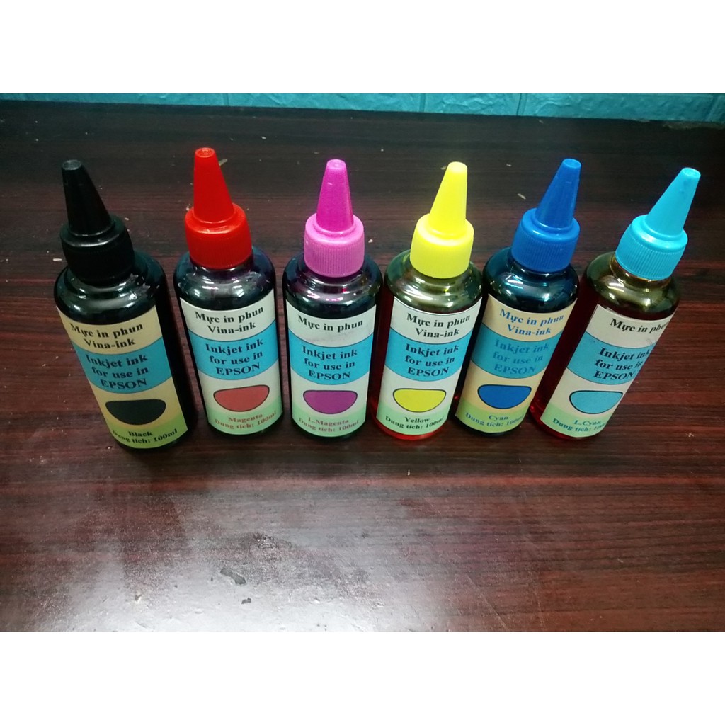 MỰC IN MÁY EPSON 6 MÀU - DÙNG CHO TẤT CẢ CÁC DÒNG MÁY IN PHUN 6 MÀU CỦA EPSONLoại mực: In phun nước dạng DYE.