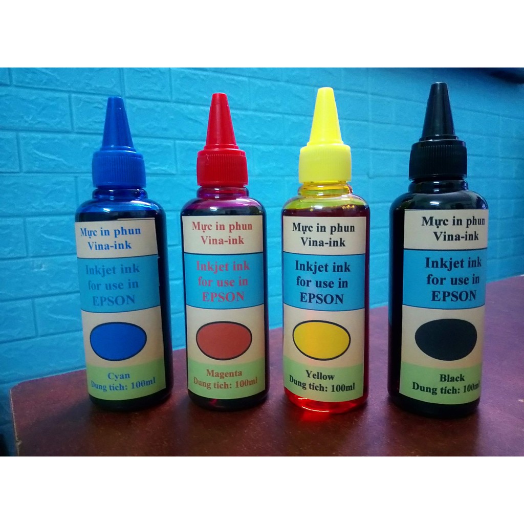 Loại mực in: Mực in phun màu dành cho các dòng máy in phun epson 4 màuMàu sắc: Màu vàng, màu xanh, màu đen, màu đỏ
