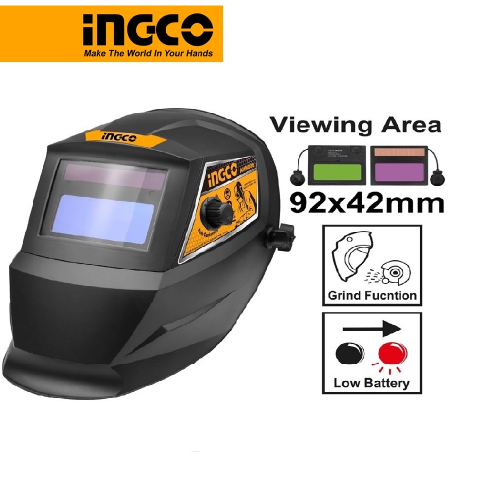 - Mũ hàn tự động INGCO AHM008 là sản phẩm được cải tiến qua nhiều thế hệ so với các mặt nạ thông thường, có khả năng cắt bằng tia hồ quang điện, có thể điều chỉnh trạng thái màu biến đổi từ 9 ~ 13 tùy theo độ lớn của năng lượng tia bức xạ được phát sinh ra từ khi hàn