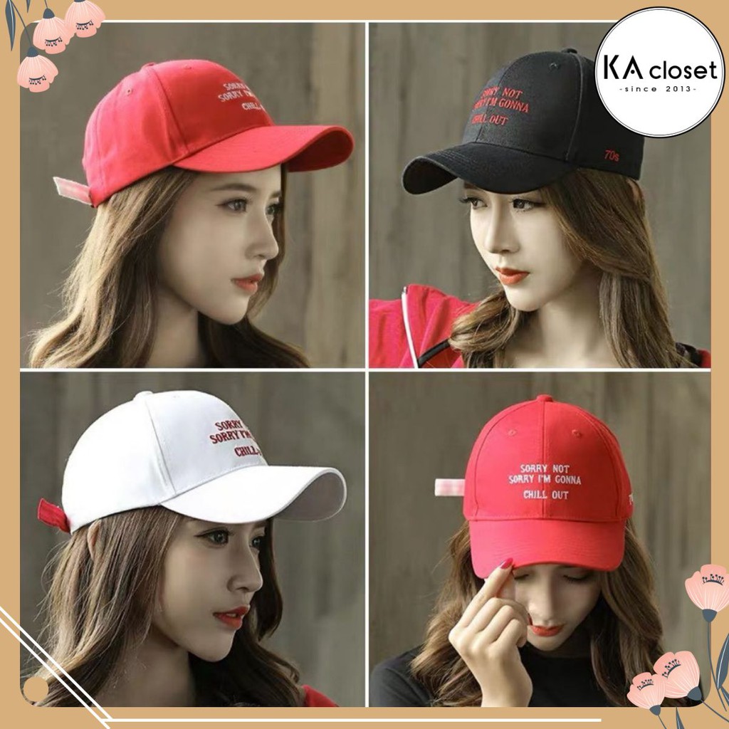 Thể Thao & Dã Ngoại > Phụ Kiện Thể Thao & Dã Ngoại > Ô/Dù || 🆕 Mũ lưỡi trai 70s KA Closet thời trang đội che nắng, du lịch, chữ thêu có 3 màu Đen, Trắng, Đỏ vải Dù, giá rẻCòn hàng