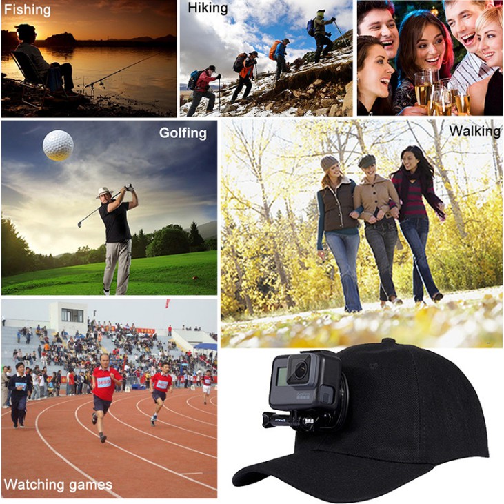- Mũ lưỡi trai gắn GoPro 8 / 7 / 6 / 5 và Action Cam dùng để thay thế cho dây đeo đầu GoPro